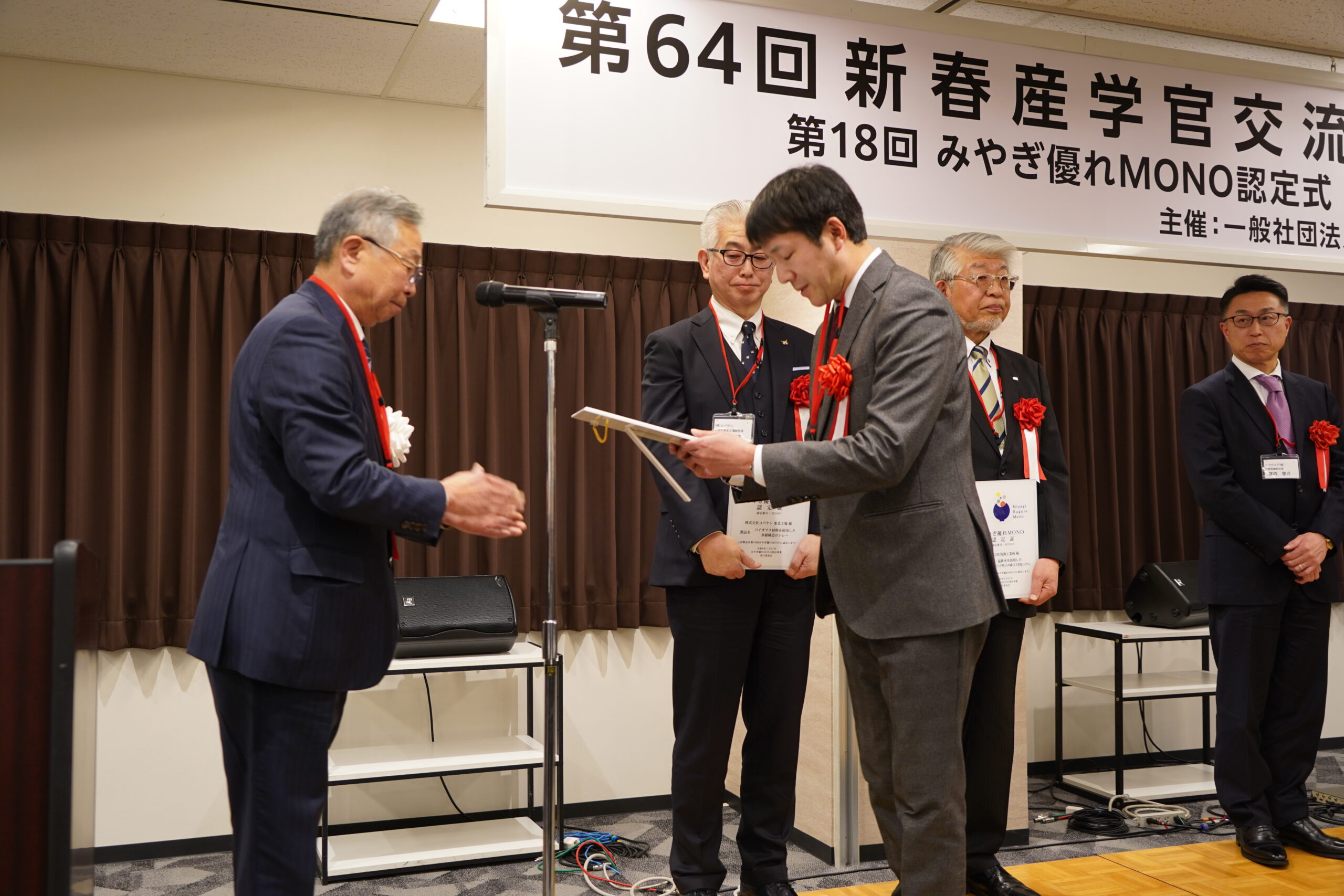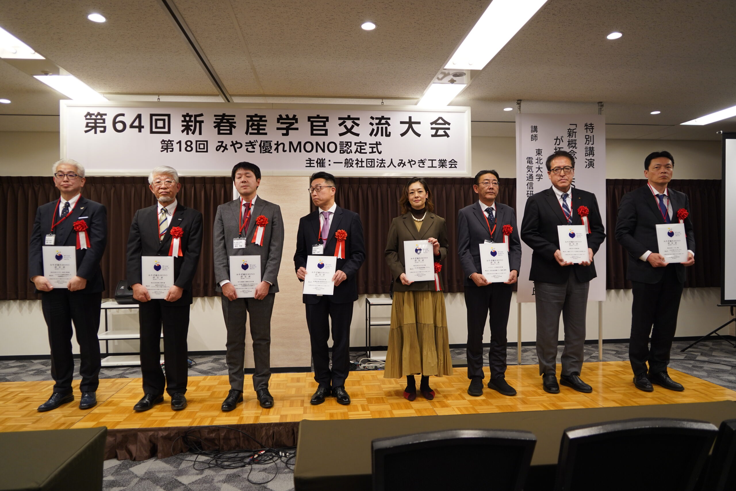 講演会に続いて、「第18回みやぎ優れMONO認定式」が行われました。今回は県内8社の